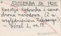 SZCZERBA St. 1925 Kwestja żydowska i samoobrona narodowa. (Z uwzględnieniem Zakopanego).