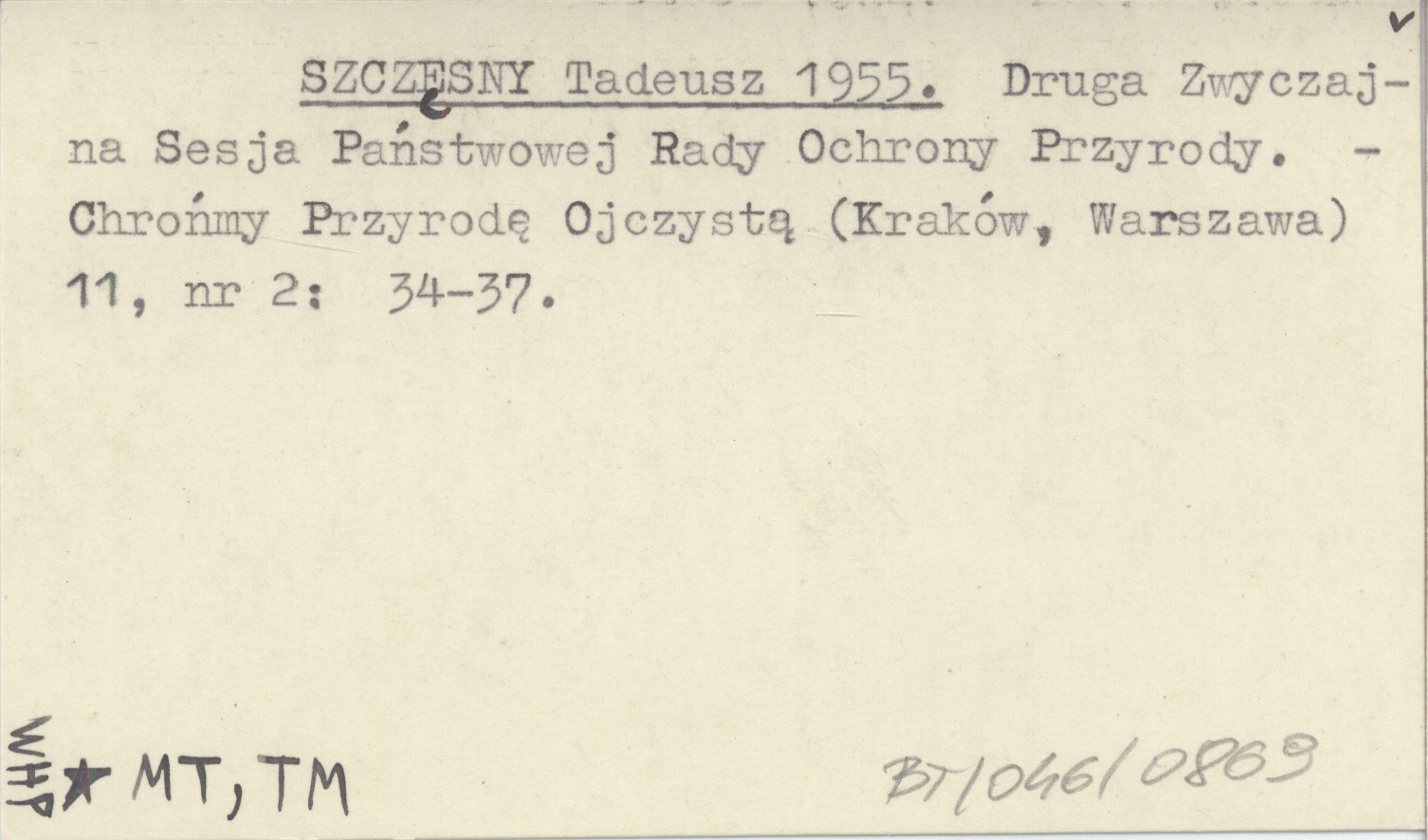 SZCZĘSNY Tadeusz 1955 Druga Zwyczajna Sesja Państwowej Rady Ochrony Przyrody.
