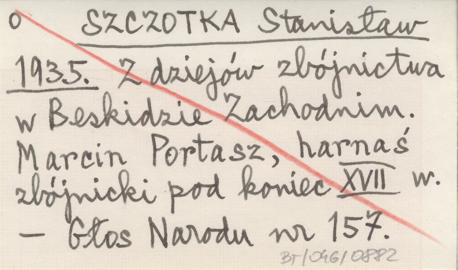 SZCZOTKA Stanisław 1935 Z dziejów zbójnictwa w Beskidzie Zachodnim. Marcin Portasz, harnaś zbójnicki pod koniec XVII w.
