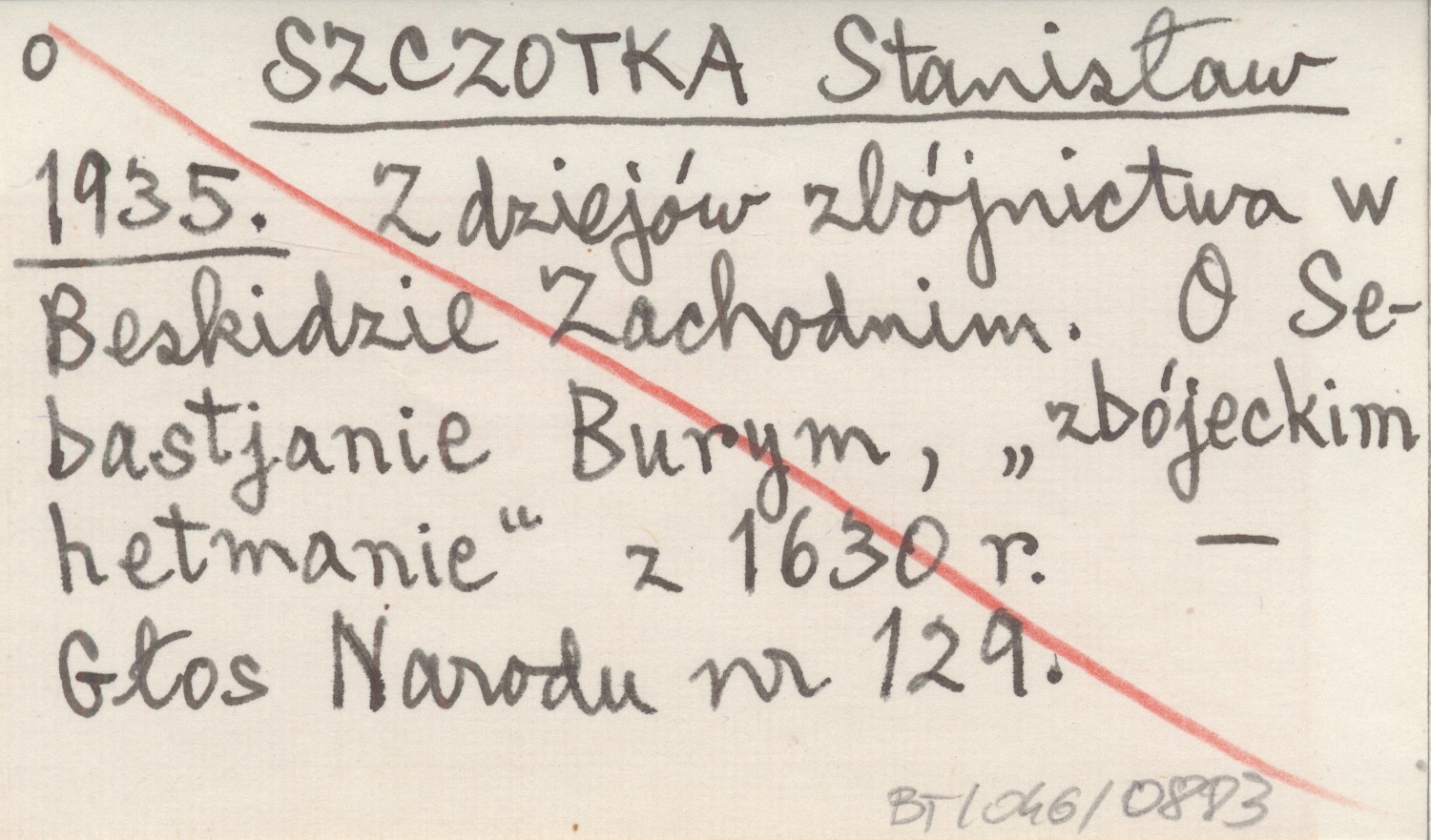 SZCZOTKA Stanisław 1935 Z dziejów zbójnictwa w Beskidzie Zachodnim. O Sebastjanie Burym, "zbójeckim hetmanie" z 1630 r.