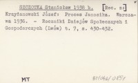 SZCZOTKA Stanisław 1938 b [Rec. z:] Krzyżanowski Józef: Proces Janosika. Warszawa 1936.