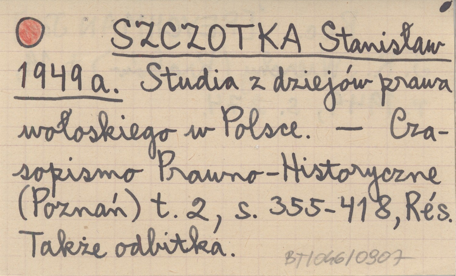 SZCZOTKA Stanisław 1949 a Studia z dziejów prawa wołoskiego w Polsce.
