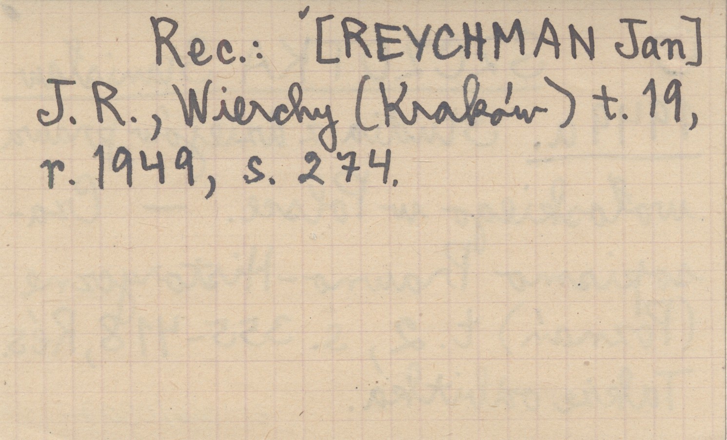 Czasopismo Prawno-Historyczne (Poznań) , T. 2: 355-418, Rés. Także odbitka. REC: [REYCHMAN Jan] J. R., Wierchy (Kraków) t. 19 (1949): 274.