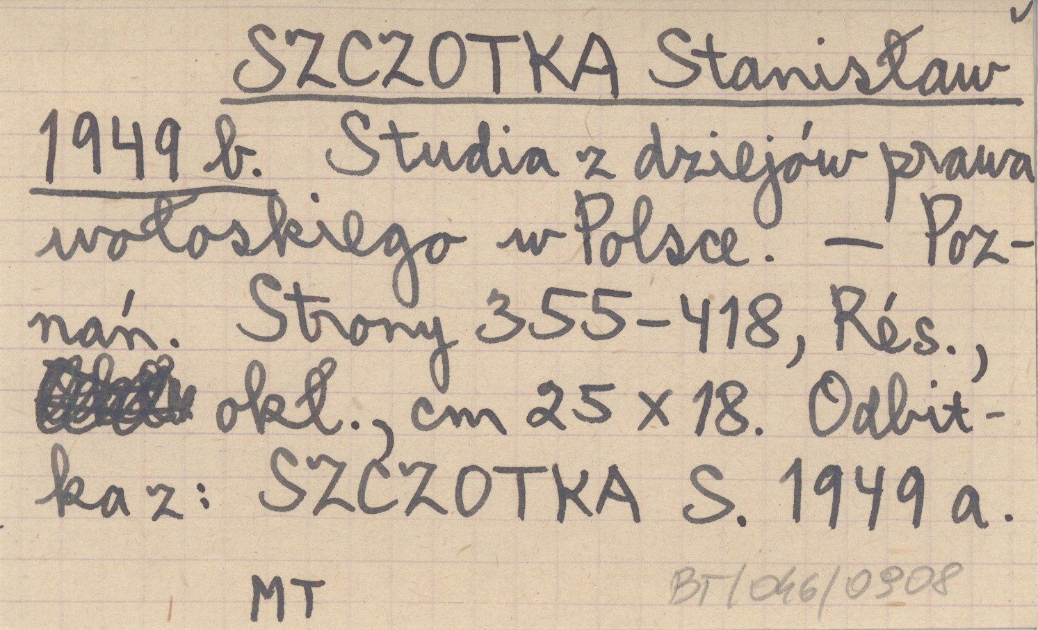 Poznań , S. 355-418, Rés., okł., 25x18 cm. Odbitka z: SZCZOTKA S. 1949 a.
