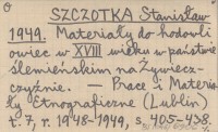 SZCZOTKA Stanisław 1949 Materiały do hodowli owiec w XVIII wieku w państwie ślemieńskim na Żywieczyźnie.