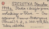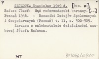 SZCZOTKA Stanisław 1949 d [Rec. o:] Rafacz Józef: Sąd referendarski koronny [...]. Poznań 1948.
