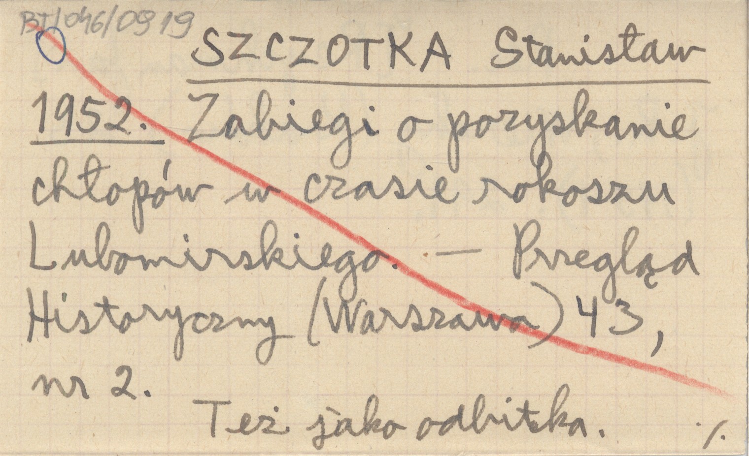 SZCZOTKA Stanisław 1952 Zabiegi o pozyskanie chłopów w czasie rokoszu Lubomirskiego.