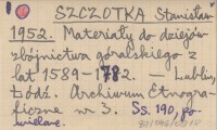 SZCZOTKA Stanisław 1952 Materiały do dziejów zbójnictwa góralskiego z lat 1589-1782.