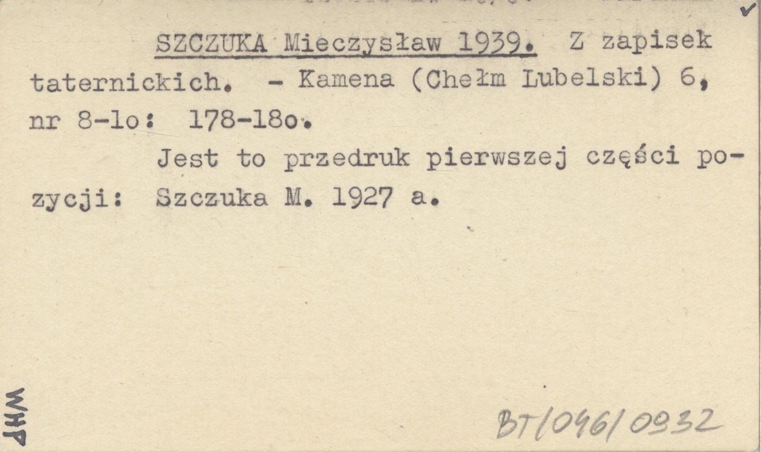 Kamena (Chełm Lubelski) , 6, nr 8-10: 178-180. Jest to przedruk pierwszej części pozycji: SZCZUKA M. 1927 a.