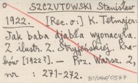 SZCZUTOWSKI Stanisław 1922 [Rec. o:] K. Tetmajer: Jak baba djabła wyonacyła. Z ilustr. Z. Stryjeńskiej. Kraków [1922?]