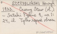 SZCZYGLIŃSKI H. 1933 Czarny Staw.