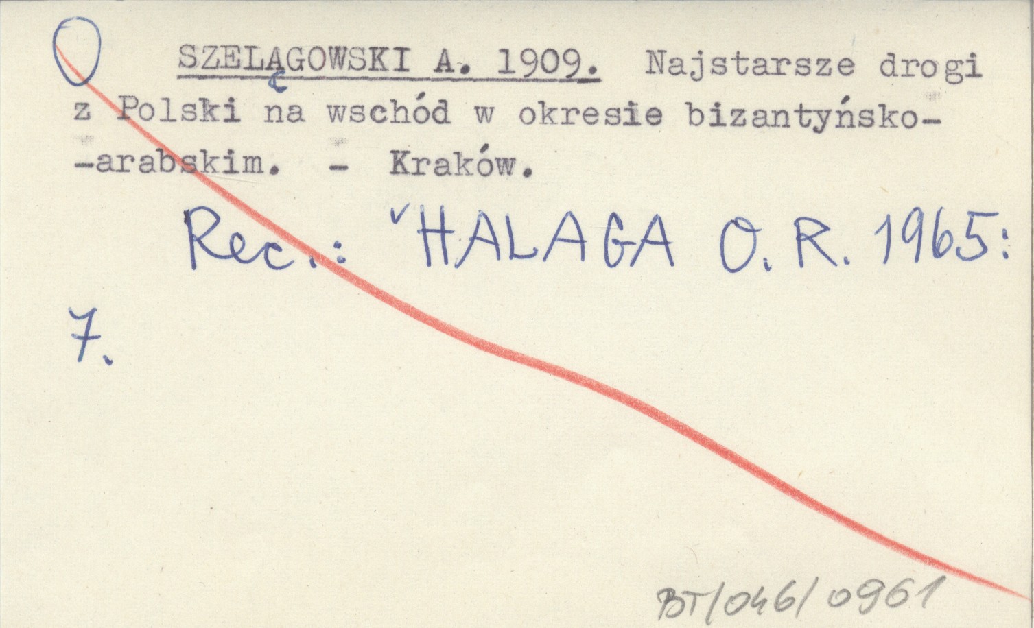 SZELĄGOWSKI A. 1909 Najstarsze drogi z Polski na wschód w okresie bizantyńsko-arabskim.