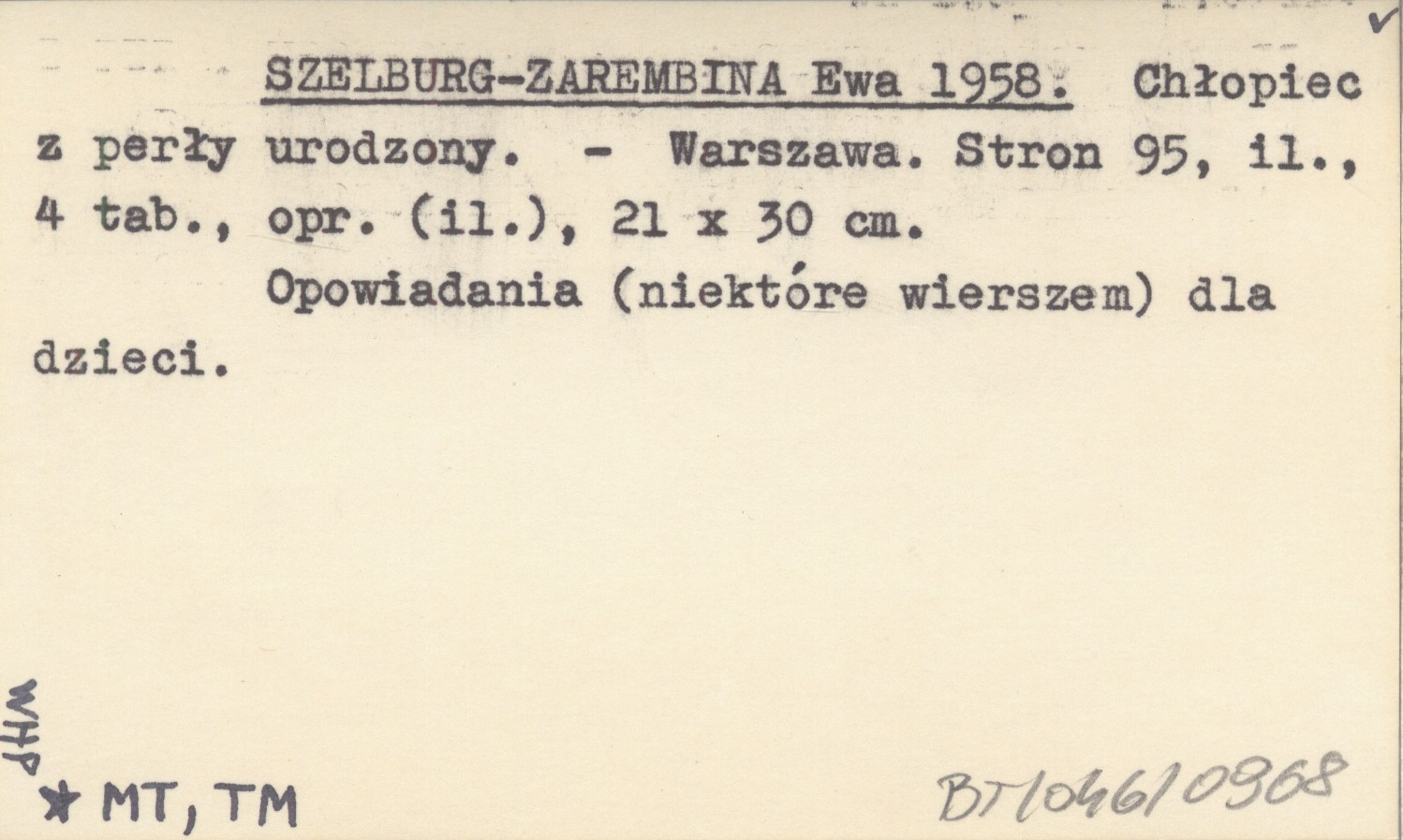 SZELBURG-ZAREMBINA Ewa 1958 Chłopiec z perły urodzony.