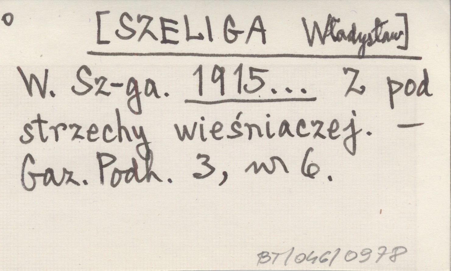 W. Sz-ga. [SZELIGA Władysław] 1915... Z pod strzechy wieśniaczej.