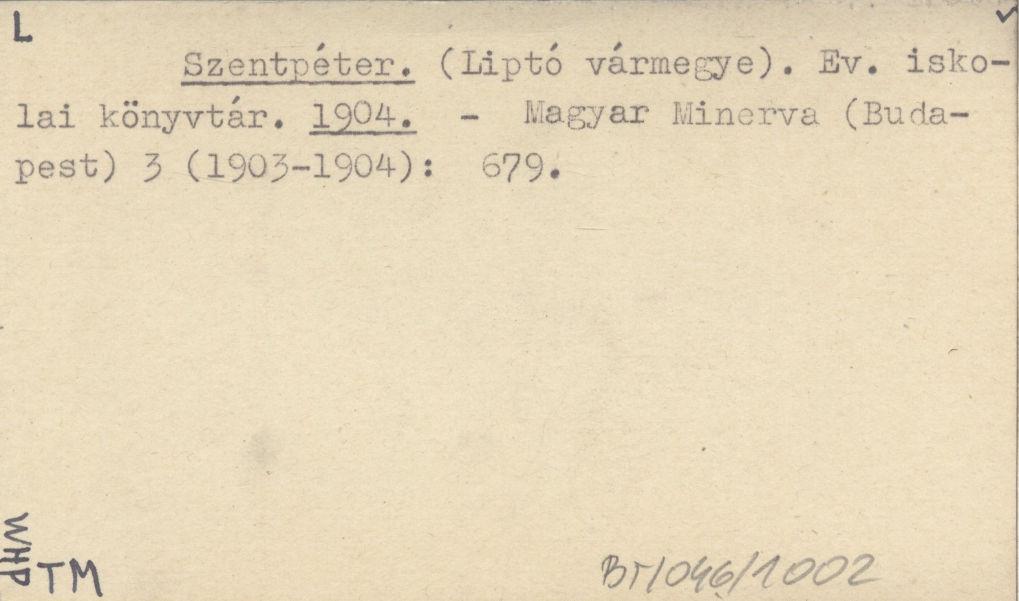 Szentpéter. (Liptó vármegye). Ev. iskolai könyvtár. 1904