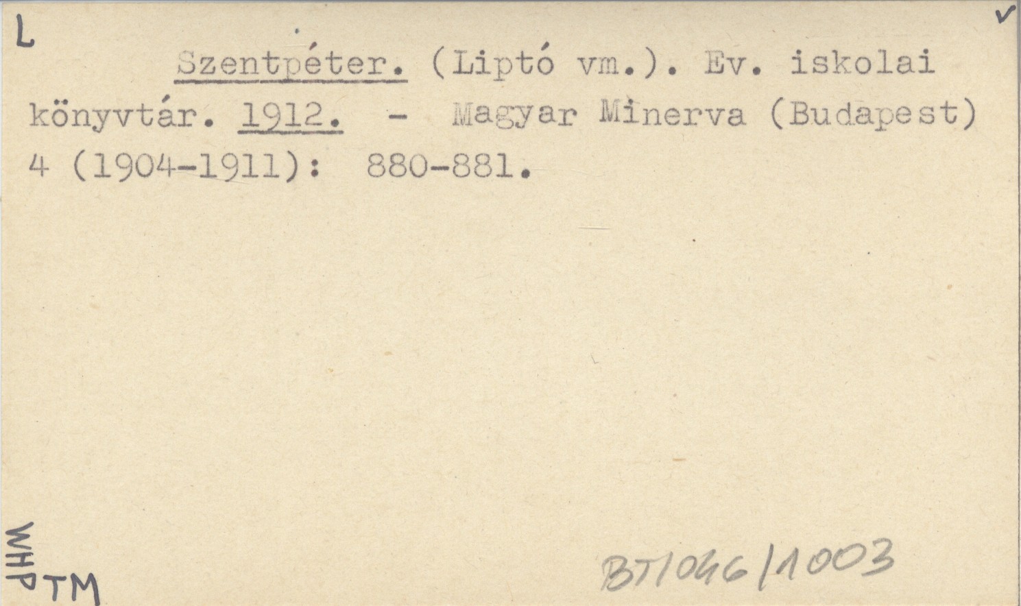 Szentpéter. (Liptó vm.) Ev. iskolai könyvtár. 1912