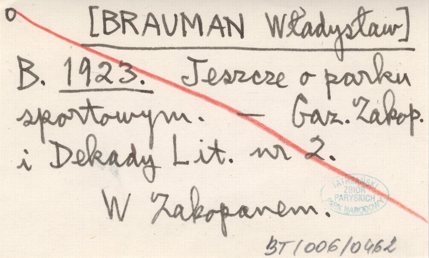 B. [BRAUMAN Władysław] 1923 Jeszcze o parku sportowym.
