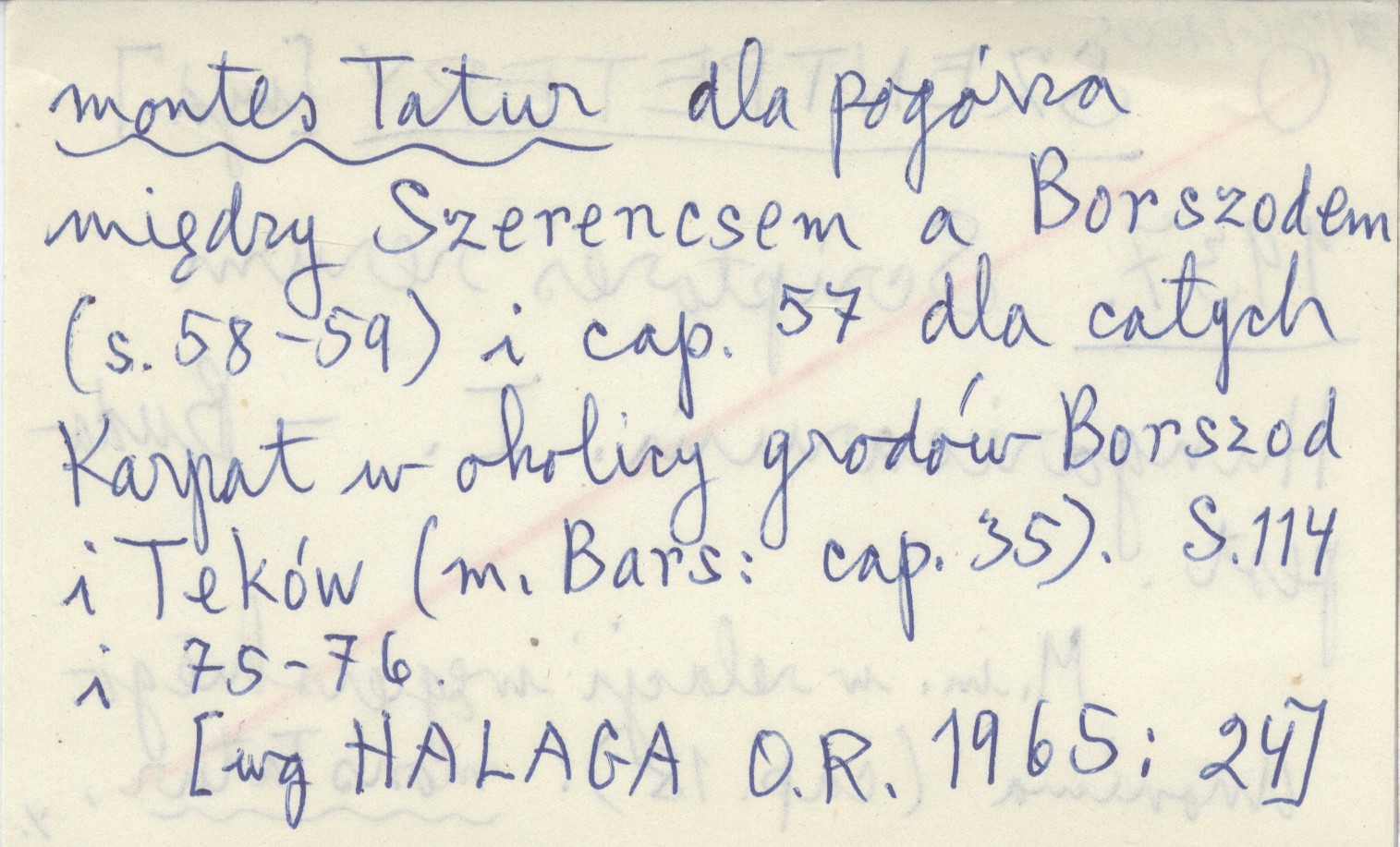 SZENTPETERY, Scriptores rerum Hungaricarum (Budapest) , I. M. in. w relacji węgierskiego anonima (cap. 18)L mons Tatur, montes Tatur dla pogórza między Szerencsem a Borszodem (s. 58-59) i cap. 57 dla całych Karpat w okolicy grodów Borszod i Teków (m. Bars.: cap. 35). S. 114 i 75-76. [wg HALAGA O. R. 1965: 24]