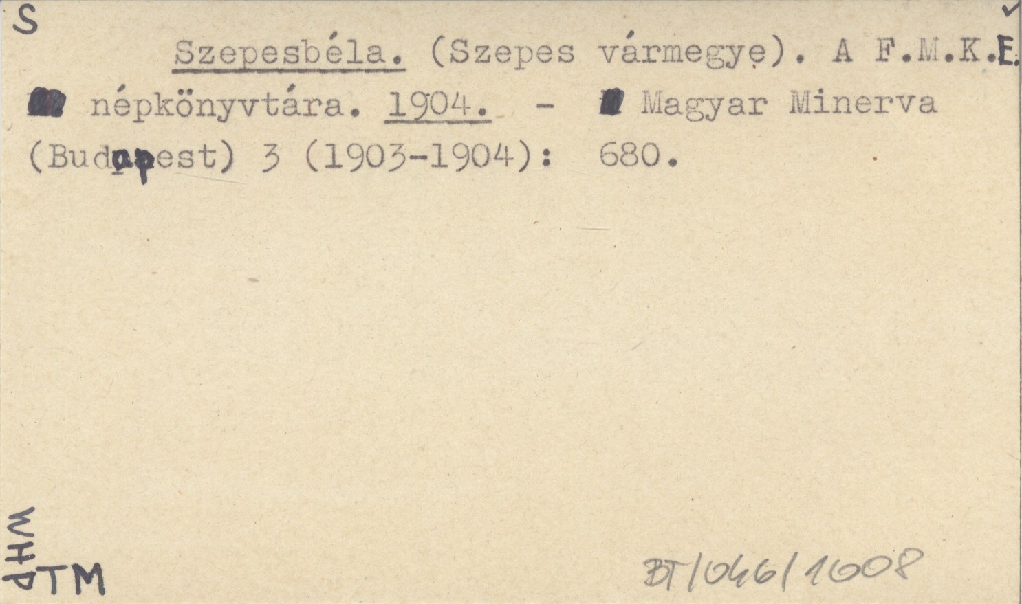 Szepesbéla. (Szepes vármegye). A F.M.K.E. népkönyvtára. 1904