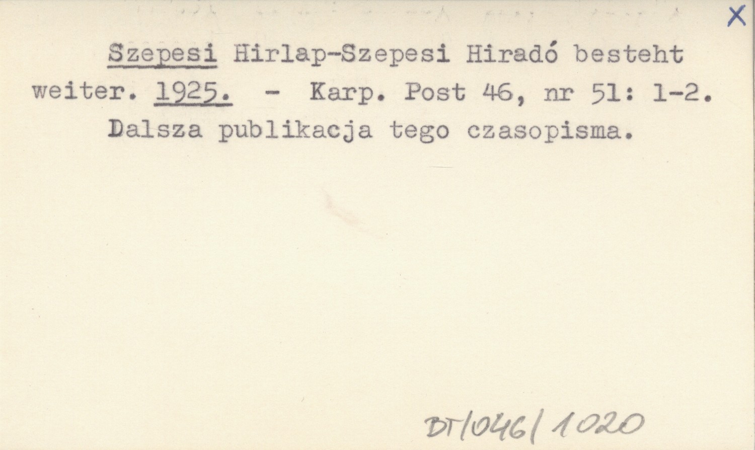 Karpathen-Post, 46, nr 51: 1-2. Dalsza publikacja tego czasopisma.