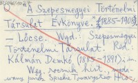 Szepesmegyei Történelmi Társulat, Szepesmegyei Történelmi Társulat Évkönyve (Lőcse) , 1885-1908. Węgierski rocznik historyczny, wydawany przez Spiskie Towarzystwo Historyczne, a zajmuj±cy się histori± Spisza. Wyszło tomów 11. Kontynuacj± był kwartalnik "Közlemények Szepes Vármegye Multjából" (1909-1934). REC: FÜGEDI E. *1947: 185.