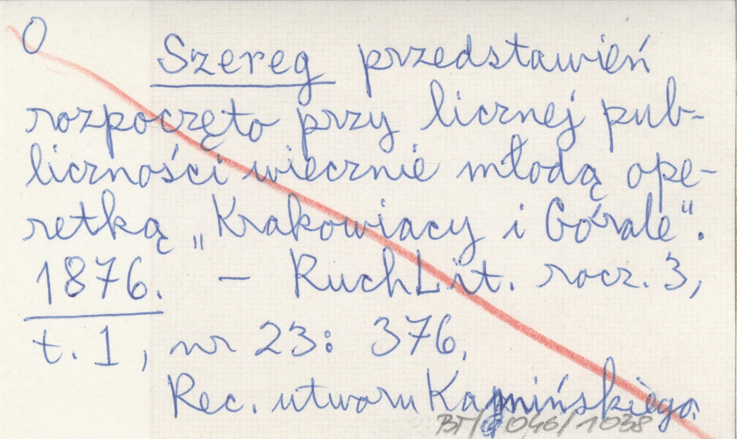 Szereg przedstawień rozpoczęto przy licznej publiczności wiecznie młodą operetką "Krakowiacy i Górale". 1876