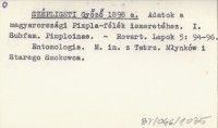 SZÉPLIGETI Győző 1898 a Adatok a magyarországi Pimpla-félék ismeretéhez. I. Subfam. Pimploinae.