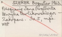 SZERER Bogusław 1963 Pożegnanie Jana Gwalberta Henryka Pawlikowskiego.