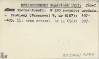 SZERMENTOWSKI Eugeniusz 1953 Józef Szermentowski. W 120 rocznicę urodzin.