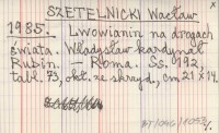 SZETELNICKI Wacław 1985 Lwowianin na drogach świata. Władysław kardynał Rubin.