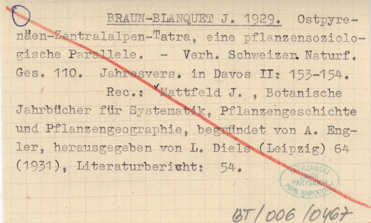 BRAUN-BLANQUET J. 1929 Ostpyrenäen-Zentralalpen-Tatra, eine pflanzensoziolgische Parallele.