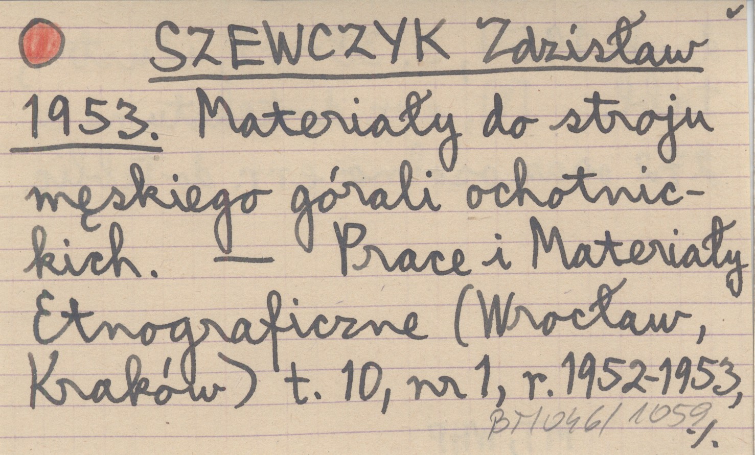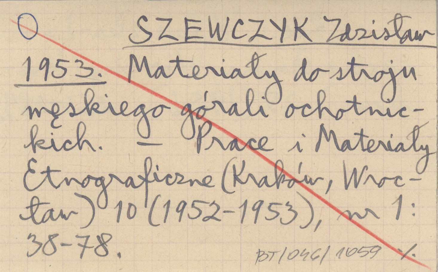 SZEWCZYK Zdzisław 1953 Materiały do stroju męskiego górali ochotnickich.