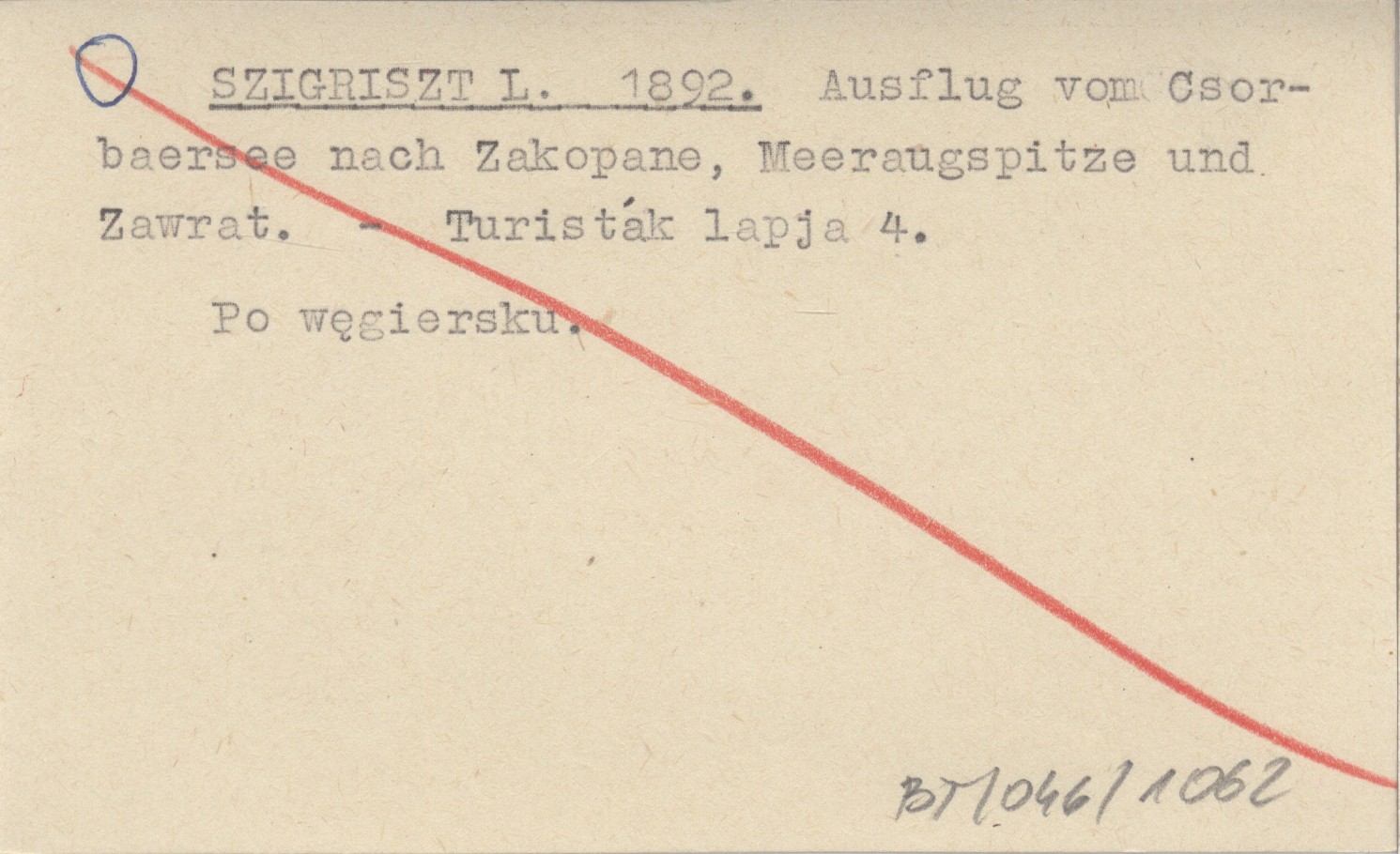 SZIGRISZT L. 1892 Ausflug vom Csorbaersee nach Zakopane, Meeraugspitze und Zawrat.