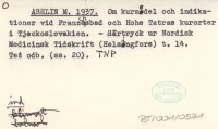 ABELIN M. 1937 Om kurmedel och indikationer vid Franzensbad och Hohe Tatras kurorter i Tjeckoslovakien.