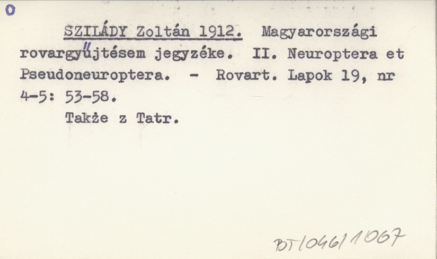 SZILÁDY Zoltán 1912 Magyarországi rovargyüjtésem jegyzéke. II. Neuroptera et Pseudoneuroptera.
