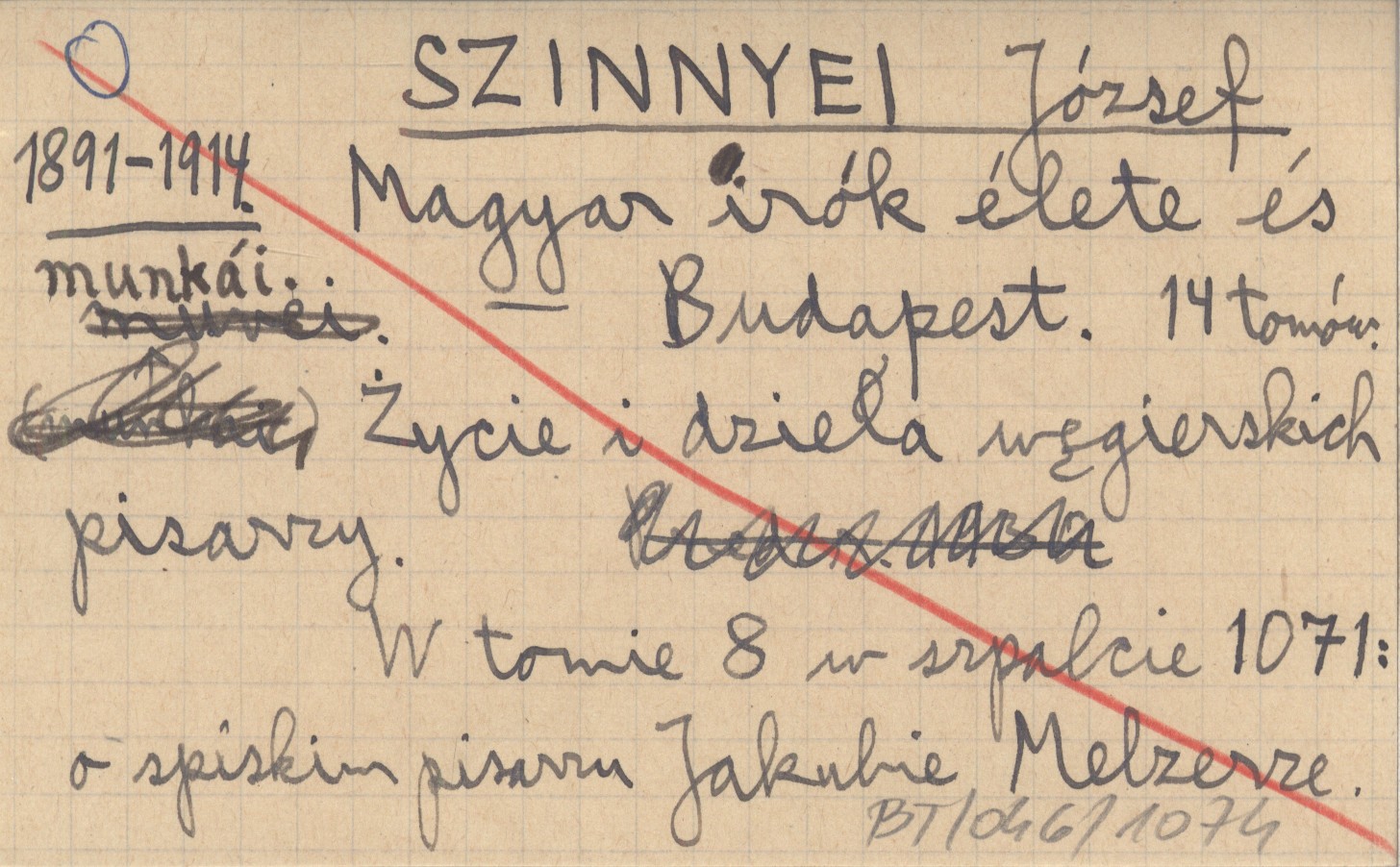 Budapest , 14 t. Życie i dzieła węgierskich pisarzy. W tomie 8 w szpalcie 1071: o spiskim pisarzu Jakubie Melzerze.