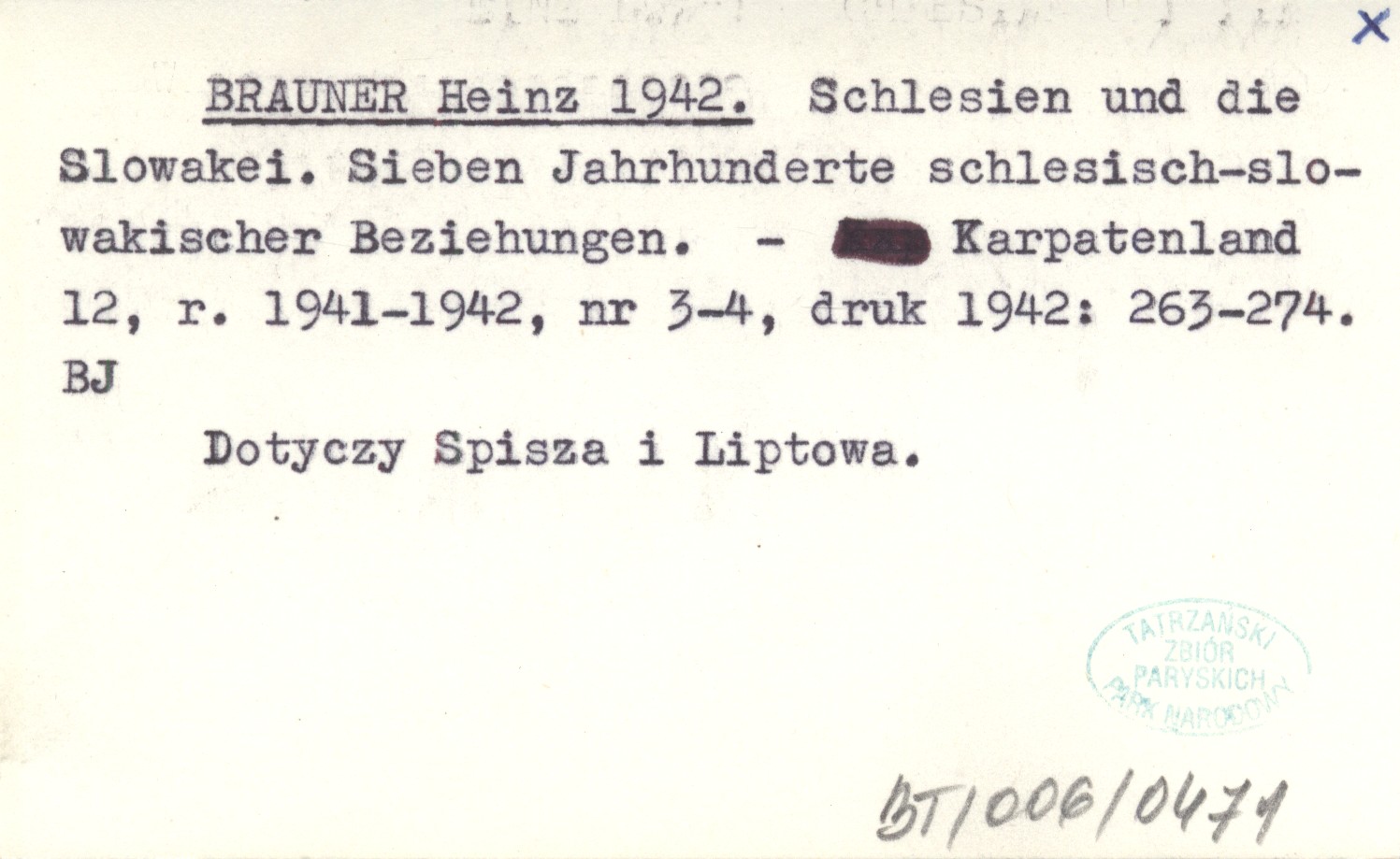 Karpatenland, 12, r. 1941-1942, druk 1942, nr 3-4: 263-274. dotyczy Spisza i Liptowa.