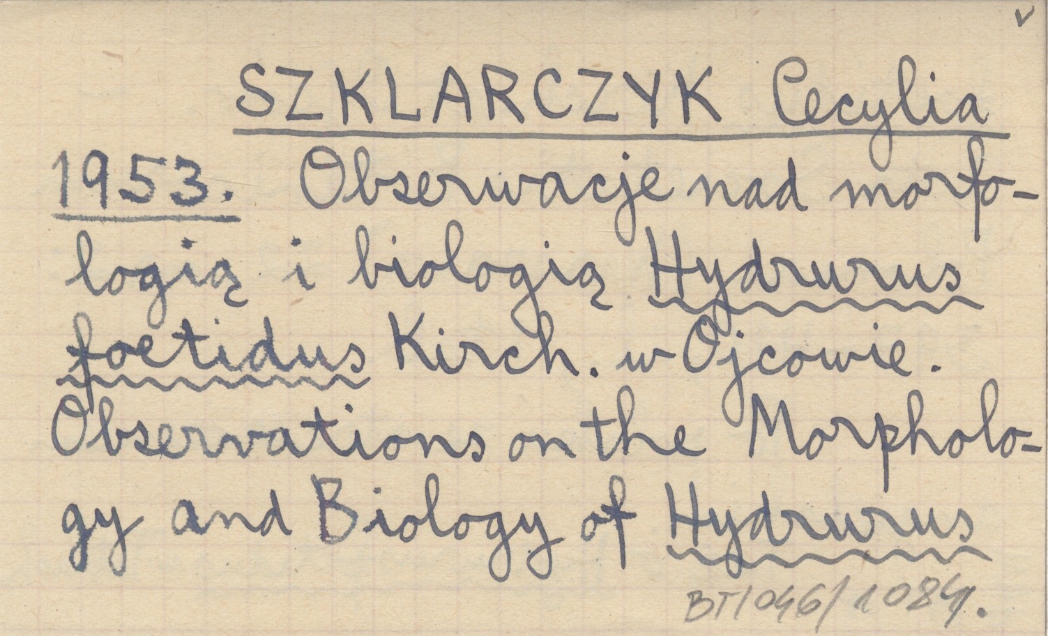 SZKLARCZYK Cecylia 1953 Obserwacje nad morfologią i biologią Hydrurus foetidus Kirch. w Ojcowie. Observations on the Morphology and Biology of Hydrurus foetidus Kirch. at Ojców.
