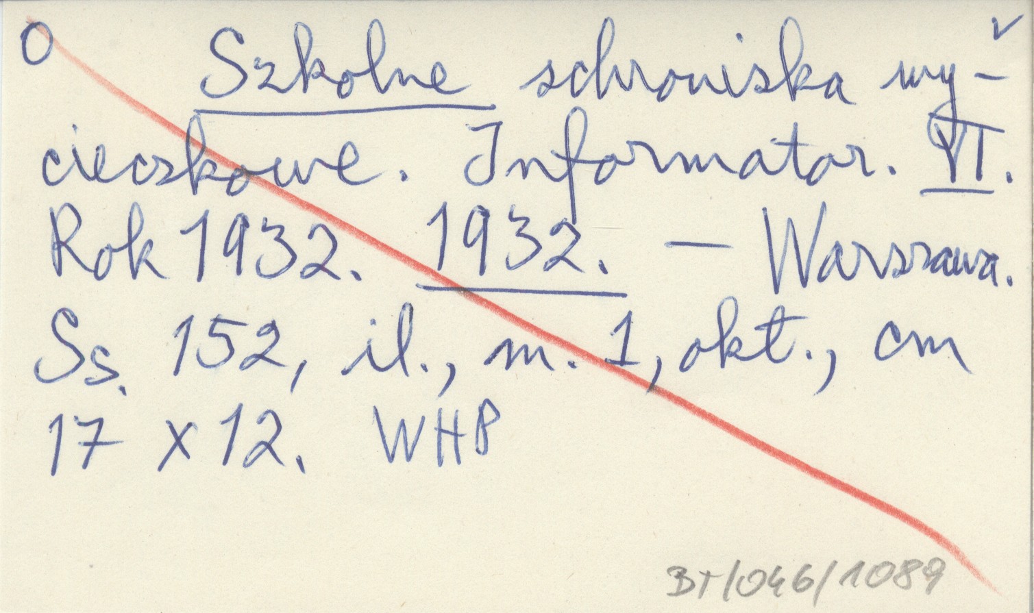 Szkolne schroniska wycieczkowe. Informator. VI. Rok 1932. 1932