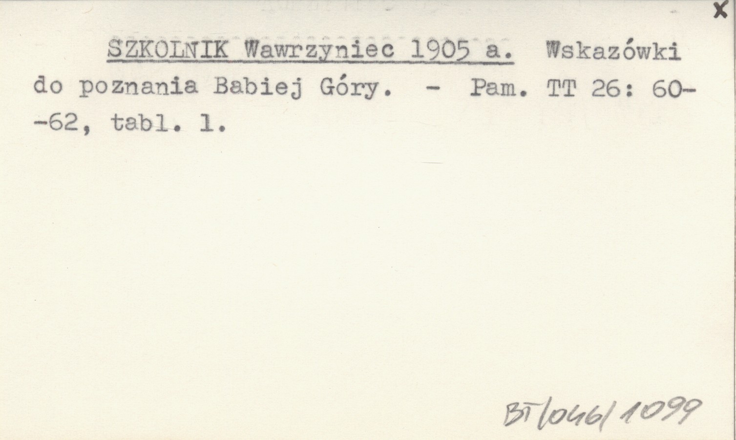 SZKOLNIK Wawrzyniec 1905 a Wskazówki do poznania Babiej Góry.