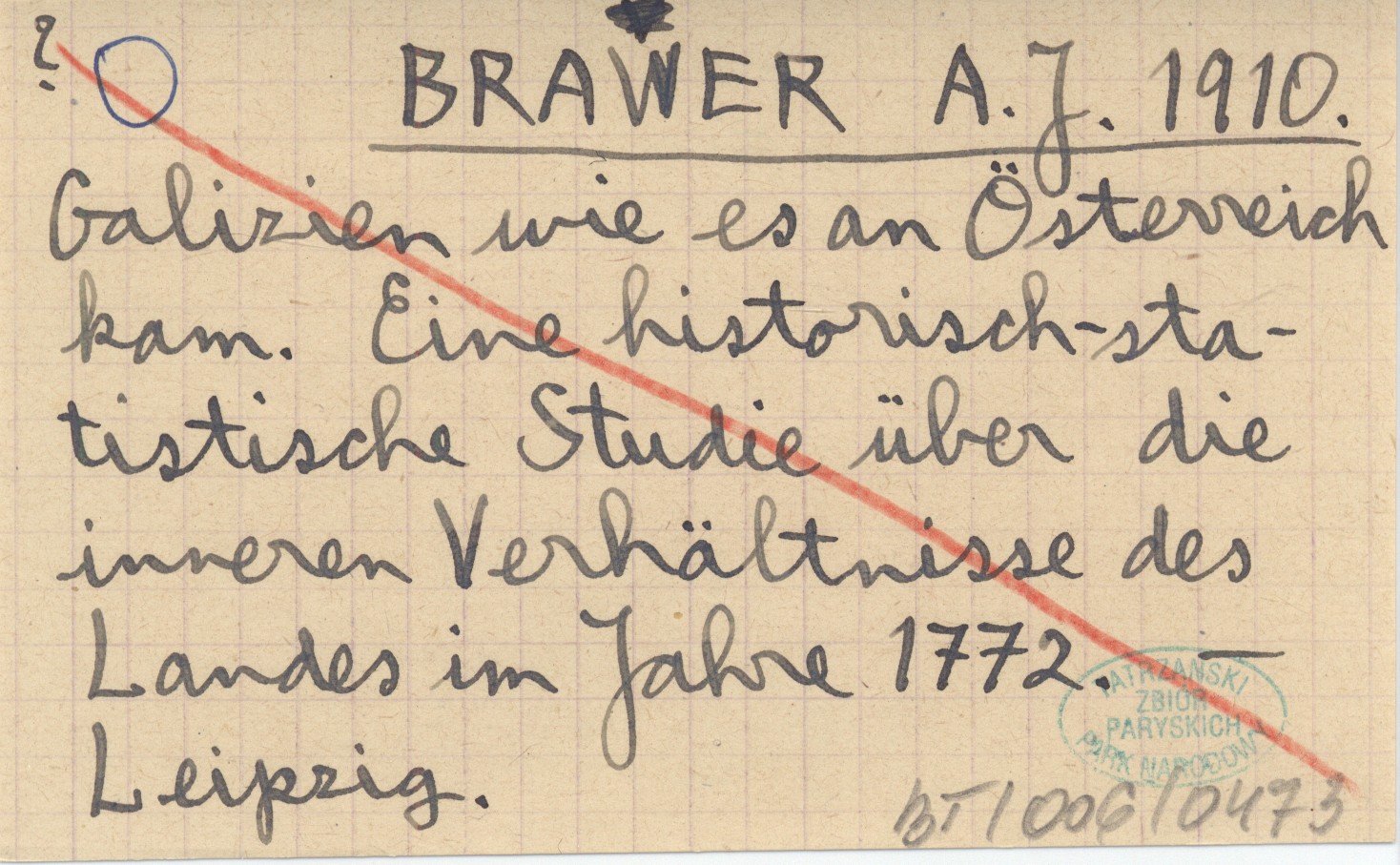 BRAWER A. J. 1910 Galizien wie es an Österreich kam. Eine historisch-statistische Studie über die inneren Verhältnisse des Landes im Jahre 1772.