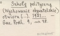 Szkołę polityczną (Wychowanie obywatelskie) otwiera [...]. 1921...