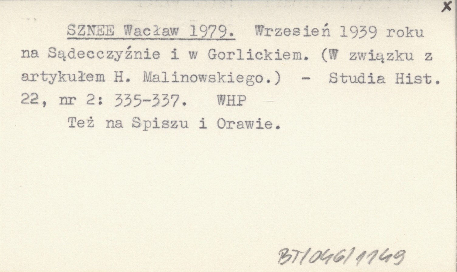 SZNEE Wacław 1979 Wrzesień 1939 roku na Sądecczyźnie i w Gorlickiem. (W związku z artykułem H. Malinowskiego).