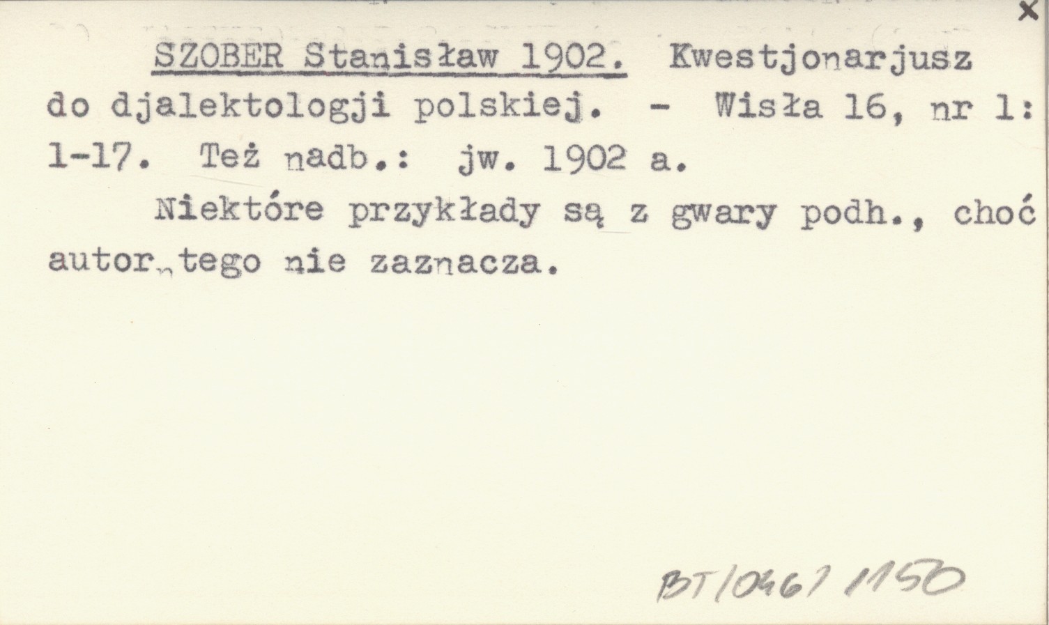 SZOBER Stanisław 1902 Kwestjonariusz do djalektologji polskiej.
