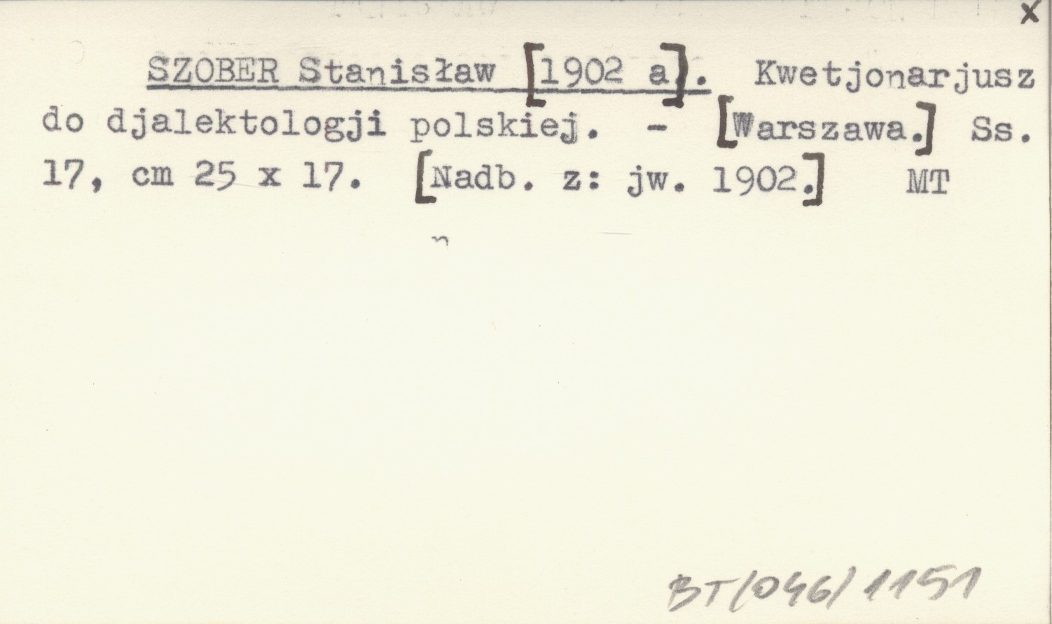 SZOBER Stanisław [1902 a] Kwestjonariusz do djalektologji polskiej.