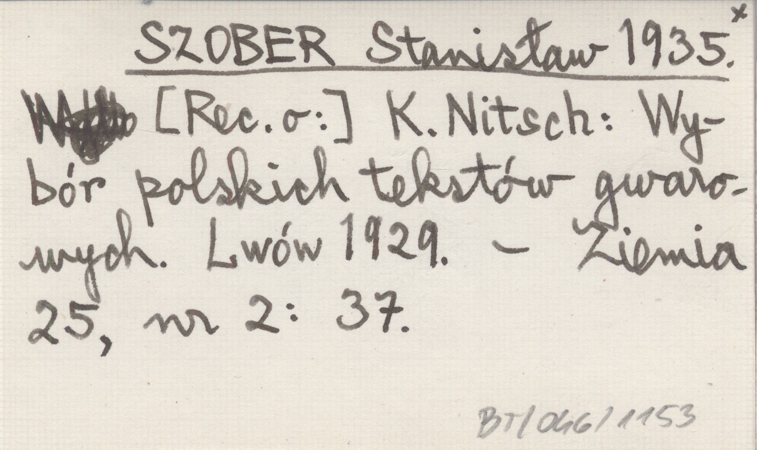 SZOBER Stanisław 1935 [Rec. o:] K. Nitsch: Wybór polskich tekstów gwarowych. Lwów 1929.