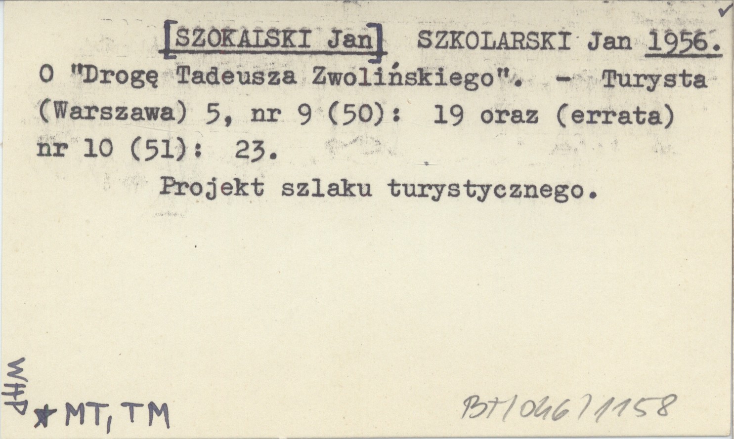 SZKOLARSKI Jan [SZOKALSKI Jan] 1956 O "Drogę Tadeusza Zwolińskiego".