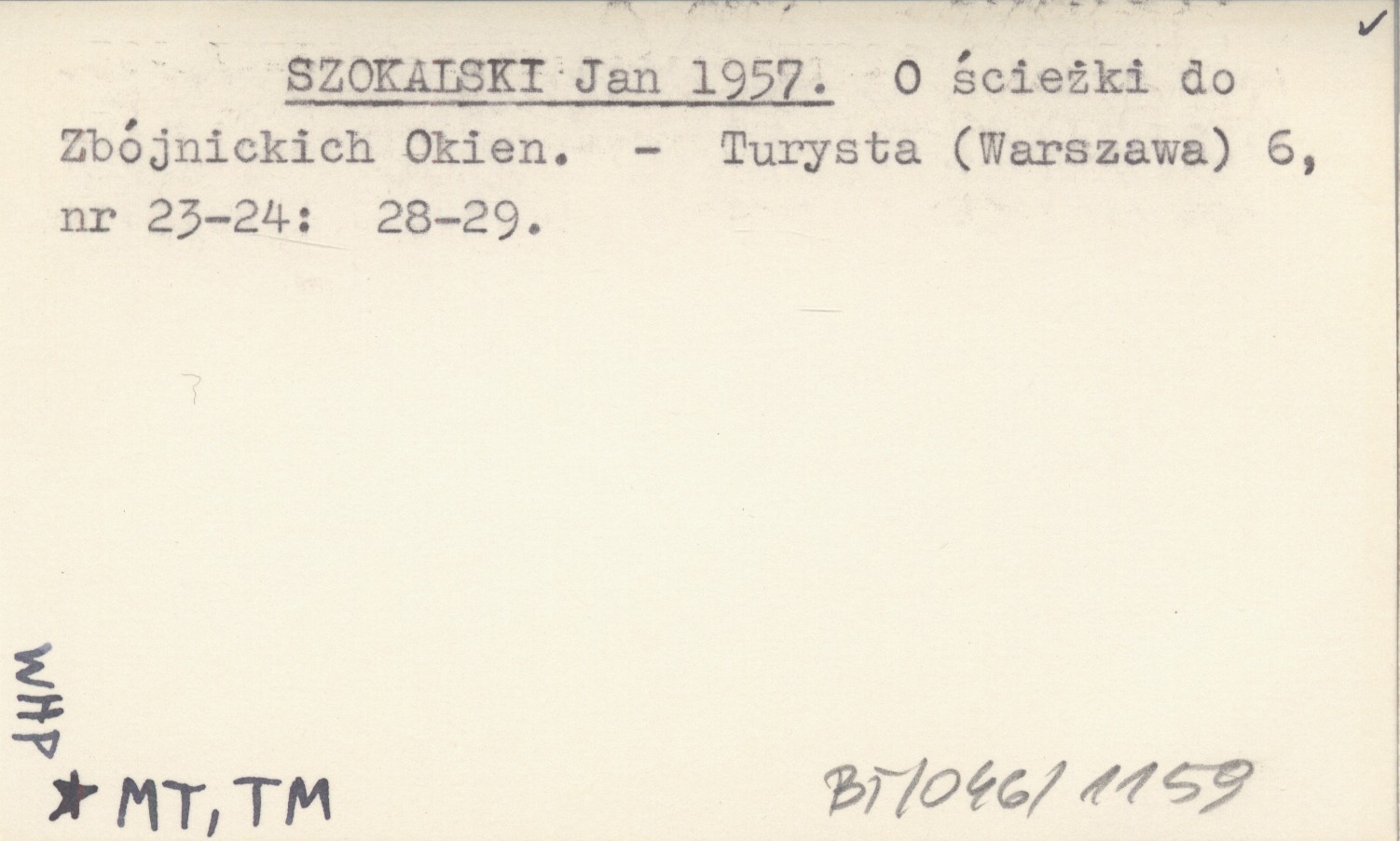SZOKALSKI Jan 1957 O ścieżki do Zbójnickich Okien.