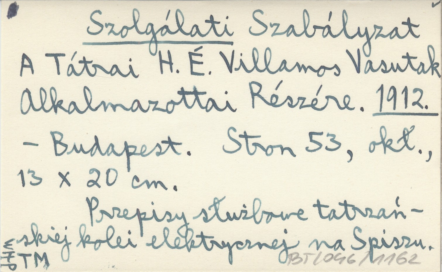 Szolgálati Szabályzat A Tátrai H. É. Villamos Vasutak Alkalmazottai Részére. 1912