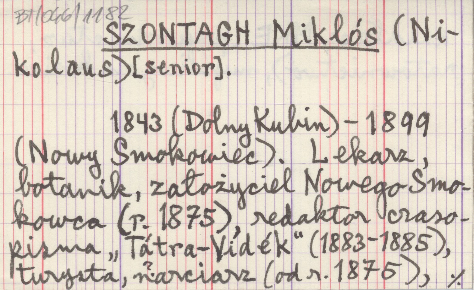 1843 (Dolny Kubin) - 1899 (Nowy Smokowiec). Lekarz, botanik, założyciel Nowego Smokowca (r. 1875), redaktor czasopisma "Tátra-Vidék" (1883-1885), turysta, narciarz (od r. 1875), działacz MKE (przewodnictwo, ratownictwo), myśliwy na kozice.
